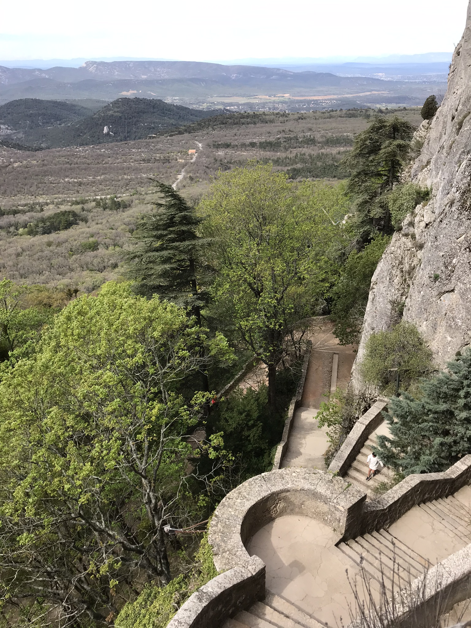 Nous avons déjeuné sur place, avant de repartir à Plan d’Aups pour une randonnée vers la grotte de Marie-Madeleine, lieu de pèlerinage depuis le Vème siècle ! Nous nous sommes garés à l’Hostellerie et sommes ensuite montés à pied par le sentier des canapés (impossible de le louper en se garant à l’Hostellerie, les chemins sont très bien fléchés, et pour info on y trouve aussi des toilettes, pratiques, et un genre de petit snack pour après la balade si on veut !). La montée n’est pas de tout repos, mais n’est pas spécialement difficile (il faudra juste s’arrêter pour reprendre son souffle autant qu’on en a besoin !), par contre mieux vaut être bien chaussée.